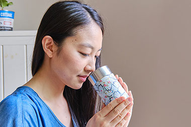 茶缶を開けて、お茶の香りを深呼吸と共に吸い込みます。