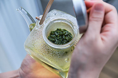 お茶の葉を急須に入れたらお茶の葉の様子を観察します。