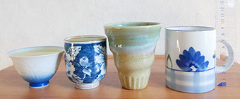 150 ml/ccを淹れた時の色々な茶碗の見え方: